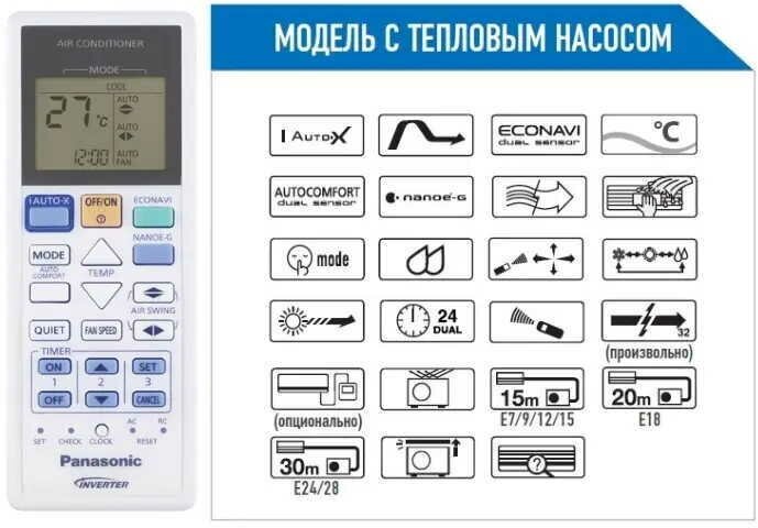 Automatic temperature maintenance, auto-restart, self-diagnosis, self-cleaning of the indoor unit, anti-ice system, warm start
