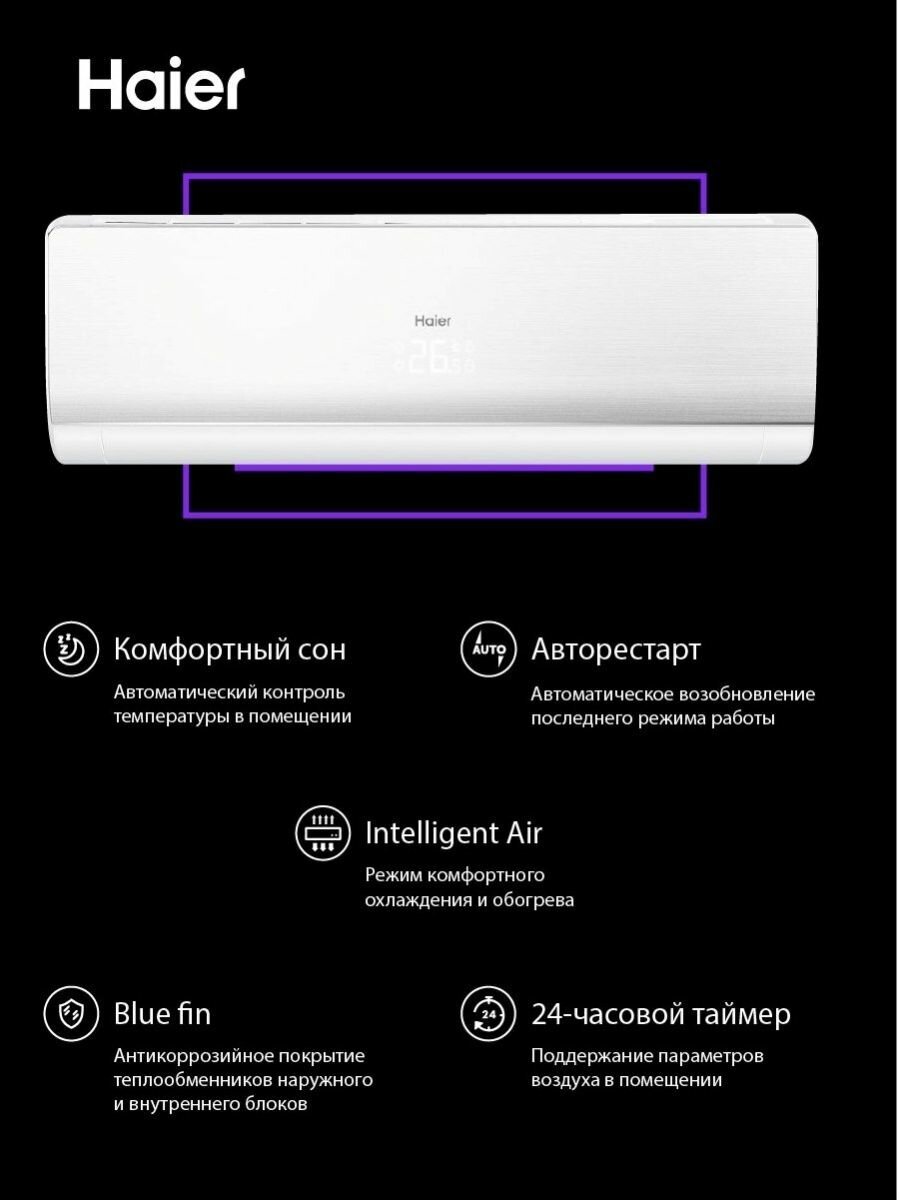 Display, operation indication, remote control, air flow direction adjustment, on/off timer, control from a smartphone, Wi-Fi module, Auto-cleaning, Auto-restart, Air purification and humidification, Prevention