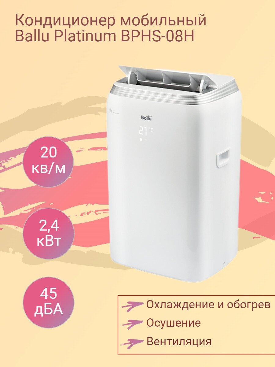 Type of air conditioner: mobile, room area: up to 20 m², Air conditioner power BTU: 7, operating mode: heating, cooling, dehumidification, additional modes: ventilation, night, dehumidification, Automatic mode, Night mode, k