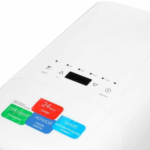 Air conditioner type: mobile, room area: 21 – 30 m², Air conditioner power BTU: 12, operating mode: cooling, Dehumidification, additional modes: ventilation, night, dehumidification, Automatic mode, Night mode, en class