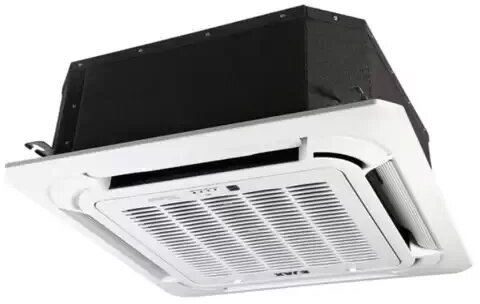Type of air conditioner: cassette, inverter, operating mode: heating, additional modes: forced ventilation, features: remote control, maximum noise level: 42 dB