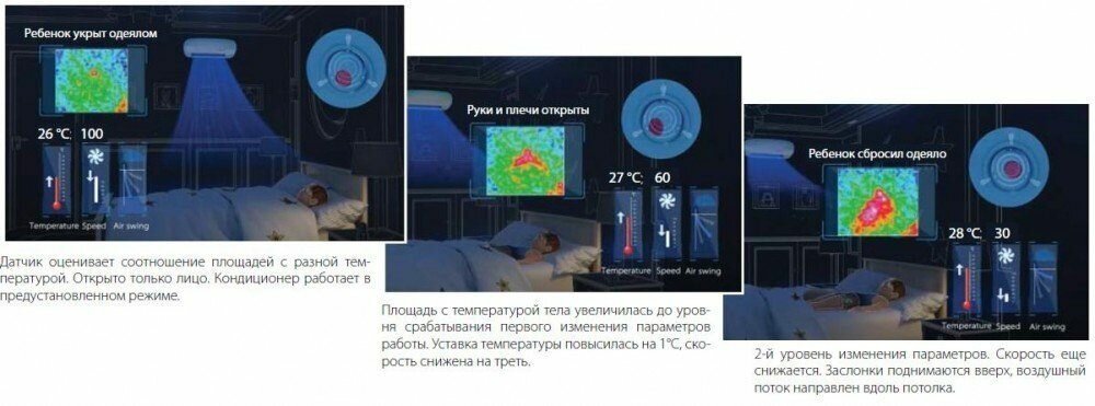Recommended for children's rooms; equipped with an infrared sensor that monitors temperature changes in the area around the child; maximum length of communications: 25 m; fan speed controller; quantities