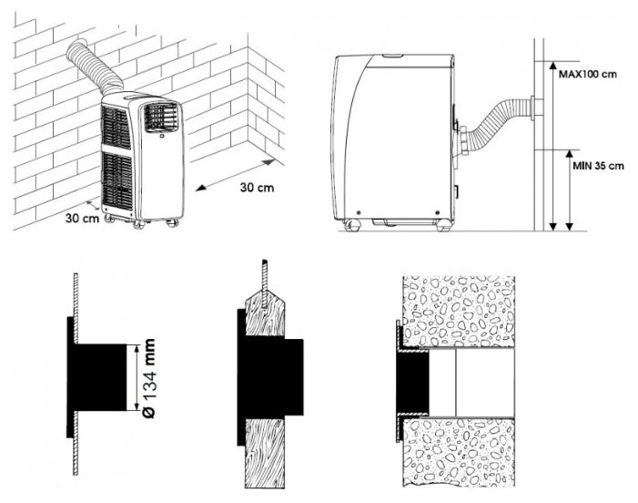 | Height of a mobile air conditioner or indoor unit of a split system: |