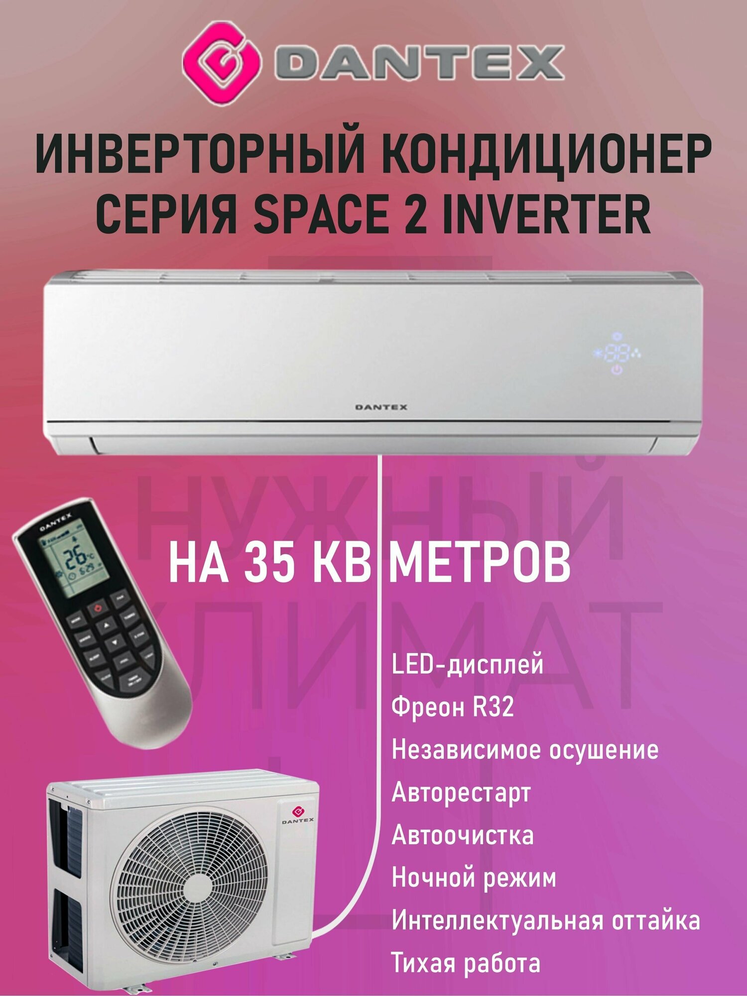 Air conditioner type: split system, room area: 31 – 54 m², inverter, Air conditioner power BTU: 12, operating mode: heating, cooling, Dehumidification, additional modes: ventilation, night, dehumidification, turbo, Automatic