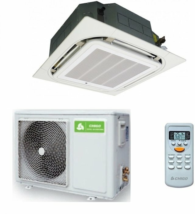 Air conditioner type: cassette, Air conditioner power BTU: 18, operating mode: heating, cooling, additional modes: ventilation, night, dehumidification, supply ventilation, features: remote control, air direction adjustment