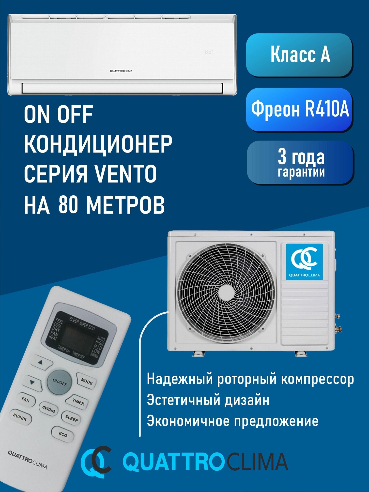 Adaptation with low temperature kit; Aesthetic design; Compact dimensions; Reliable rotary compressor; Economical offer