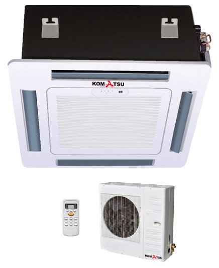 Air conditioner type: cassette, room area: 80 – 120 m², air conditioner power BTU: 36, operating mode: heating, cooling, additional modes: ventilation, night, dehumidification, features: remote control, directional adjustment