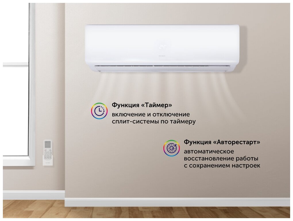 Air conditioner type: split system, air conditioner power BTU: 12, operating mode: heating, cooling, additional modes: ventilation, night, dehumidification, features: remote control, air flow direction adjustment, ta�
