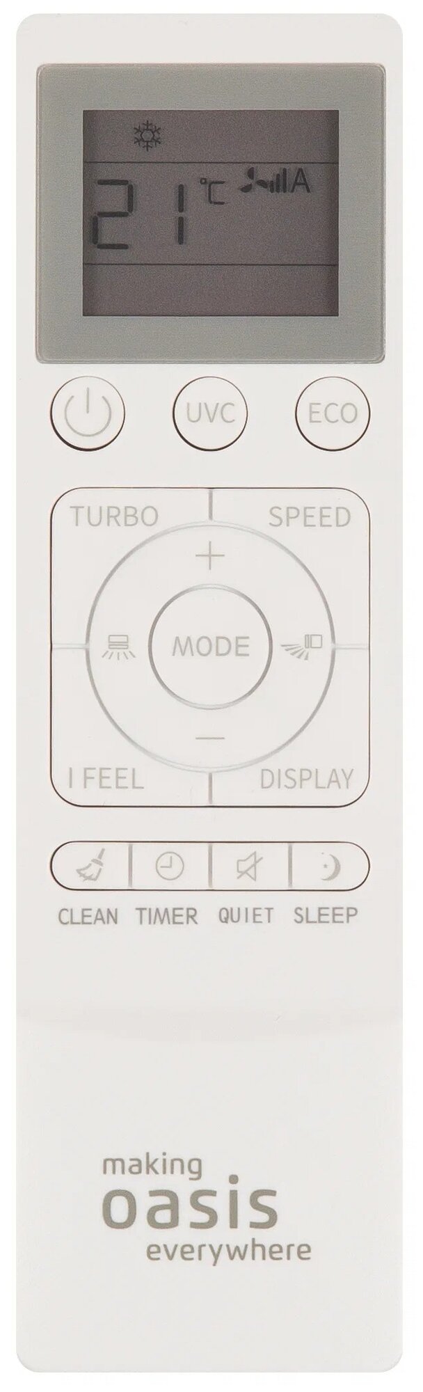 Operating mode: cooling, additional modes: ventilation, night, dehumidification, eco mode, features: on/off timer