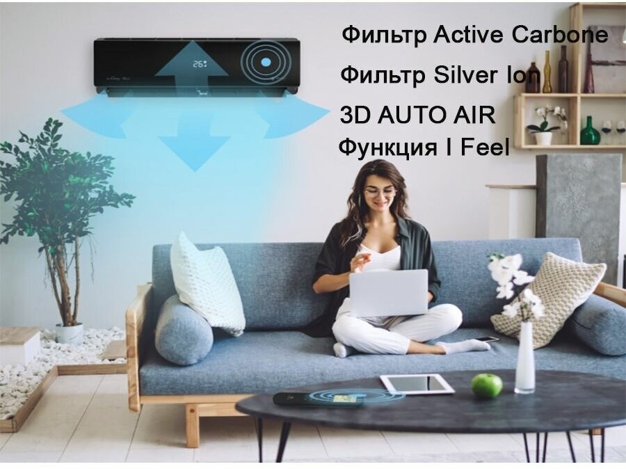 5 speeds, single-phase, automatic air flow control 3D Auto Air, ECO mode, SLEEP mode, low noise level, anti-mold function, hidden LED display, I Feel function, additional compressor noise insulation, anti-corrosion