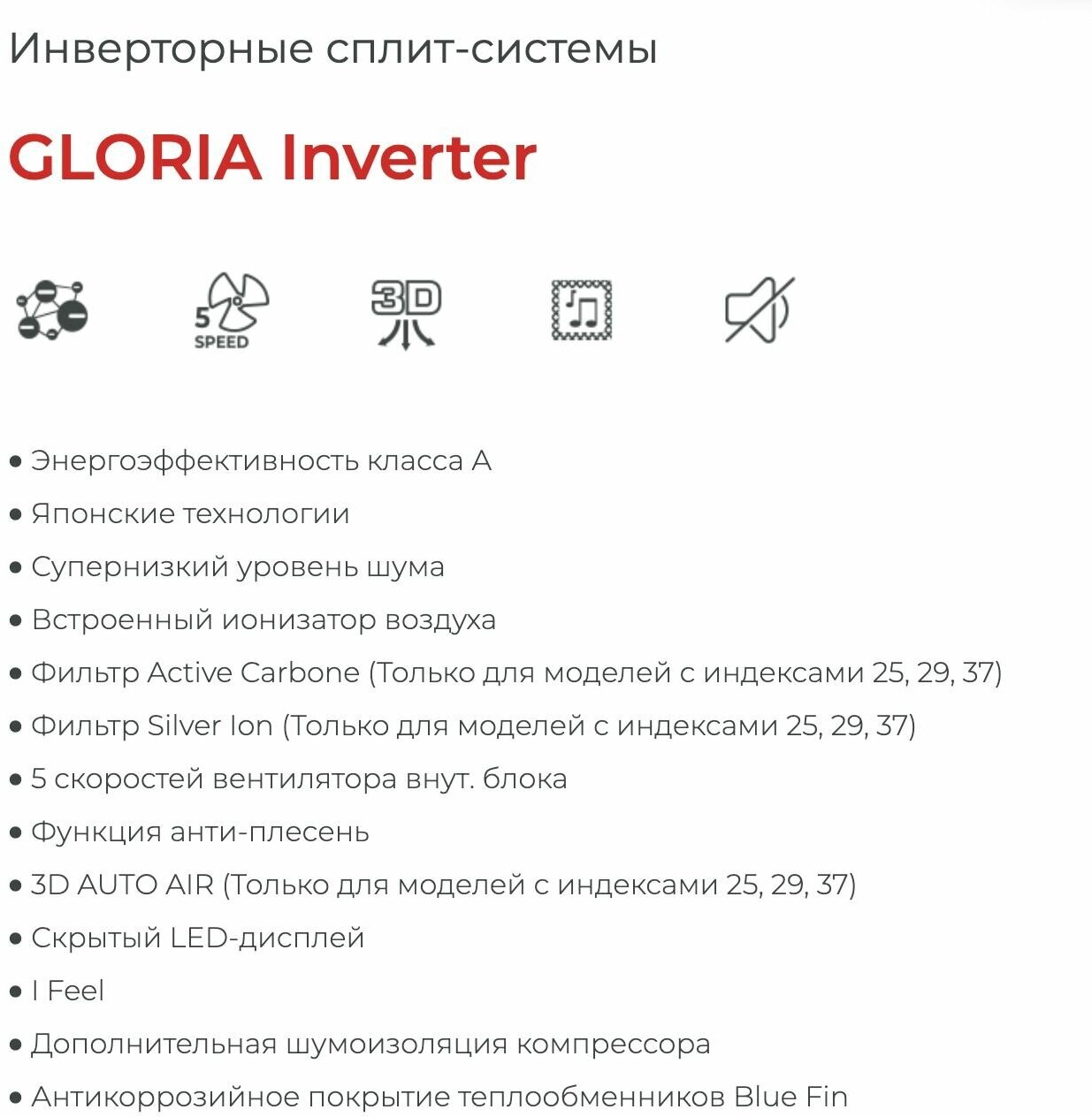 Air conditioner type: split system, room area: 21 – 30 m², inverter, air conditioner power BTU: 9, operating mode: heating, cooling, dehumidification, additional modes: breeze, ventilation, night, dehumidification, “I save” mode, that