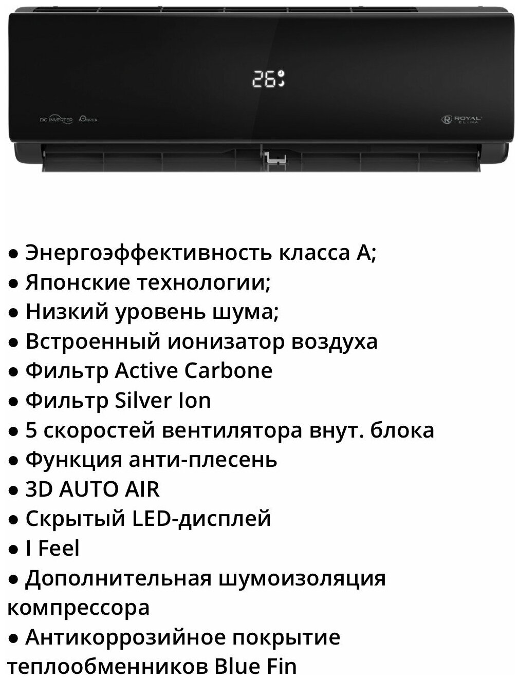 Automatic air flow control 3D Auto Air, ECO mode, SLEEP mode, number of speeds - 5, single-phase, low noise level, anti-mold function, hidden LED display, I Feel function, additional sound insulation compress
