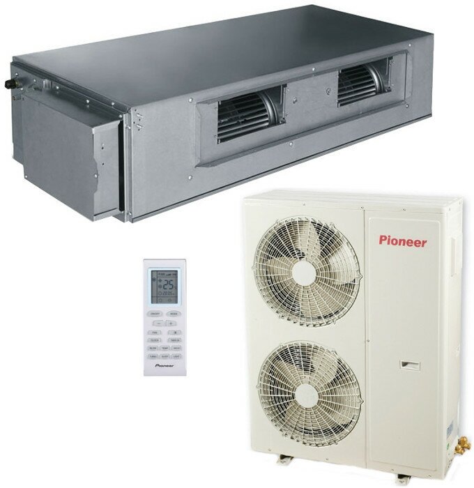 Air conditioner type: duct, room area: 21 – 30 m², Air conditioner power BTU: 49-59, operating mode: heating, cooling, additional modes: ventilation, night, dehumidification, forced ventilation, features: remote control