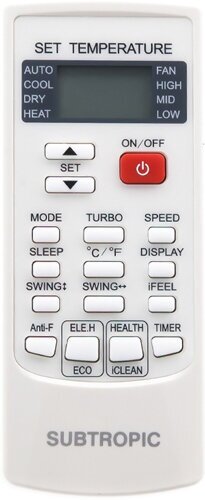 Peculiarities: Display, operation indication, remote control, air flow direction adjustment, on/off timer