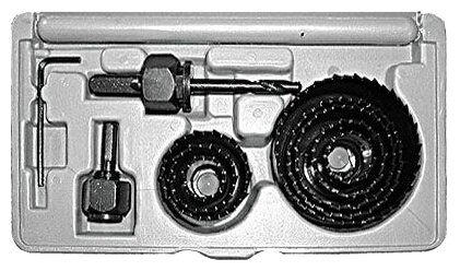Set, set includes: 8 items, type: crown, cutting part coating material: carbide, processing material: chipboard, MDF, PVC, plasterboard, wood, drilling type: dry