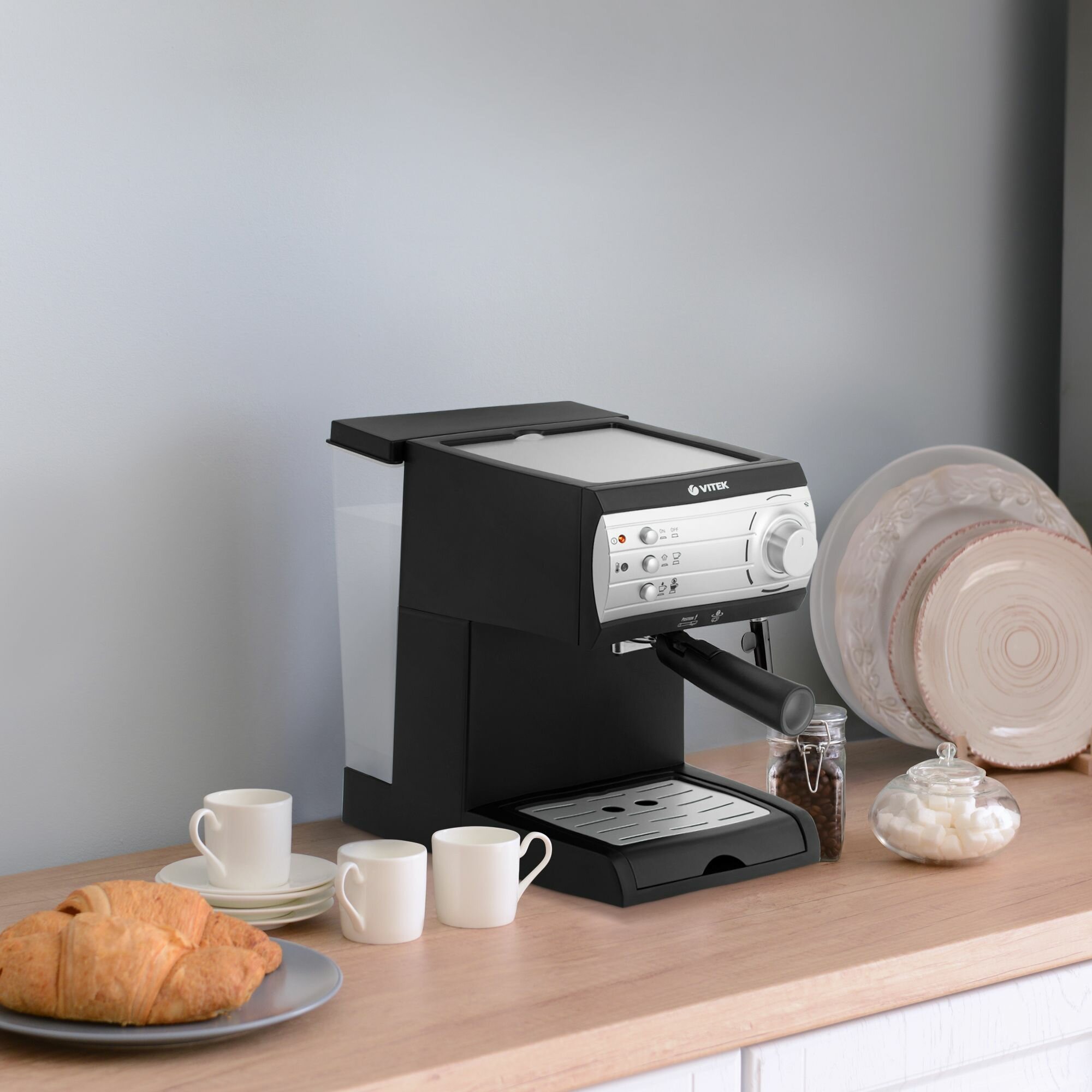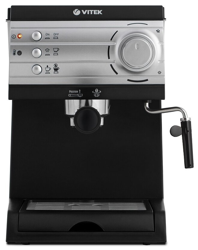 Power indicator, water level indicator, removable drip tray, readiness indicator