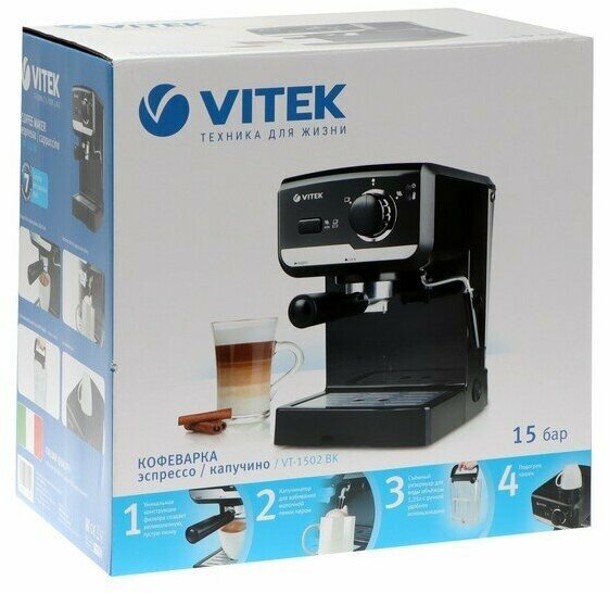 Device type: coffee maker, type: carob, type of coffee used: ground, cappuccino preparation: manual, drink type: cappuccino, espresso, pump pressure: 15 bar, volume: 1.50 l, additional functions: simultaneous preparation