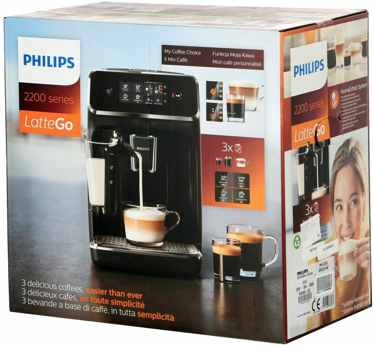 LatteGo cappuccino maker; simple and quick waste disposal; Includes: AquaClean filter, measuring spoon, test strip for checking water hardness, tube with lubricant; power cord length 1 m; milk jug capacity 0.26 l