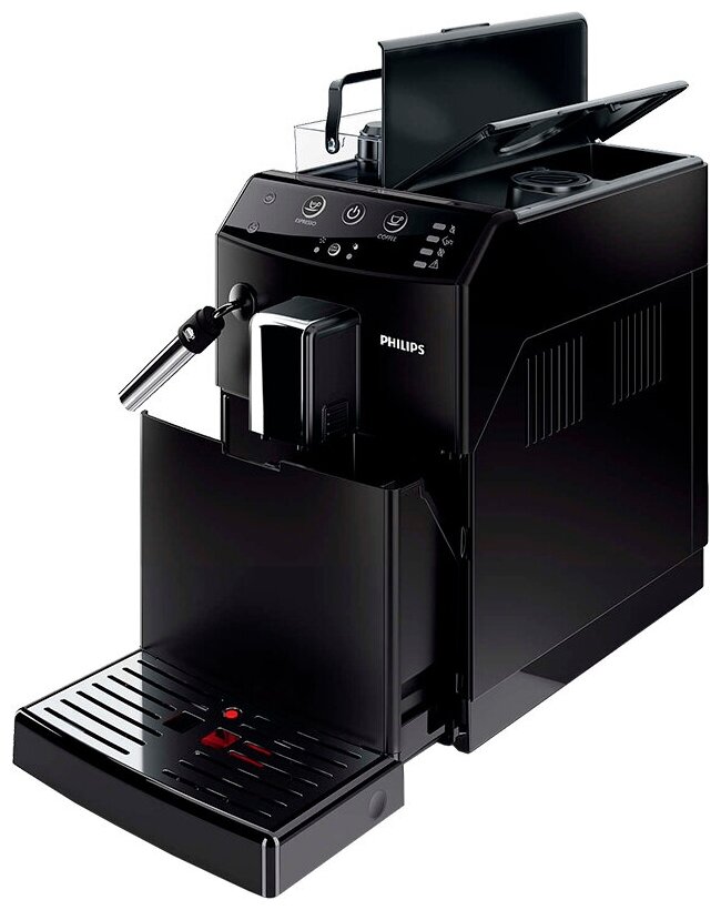 Automatic decalcification, auto shut-off when not in use, simultaneous preparation of two cups, hot water supply, pre-wetting