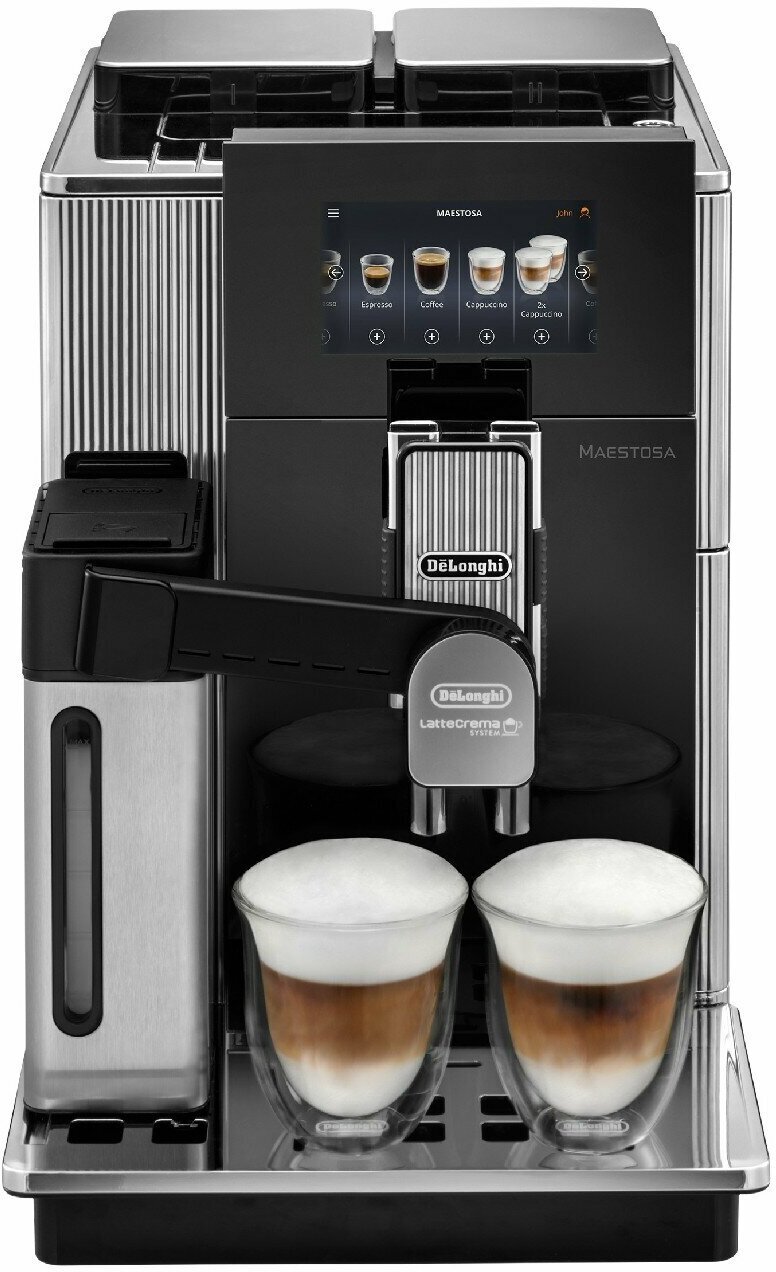 Automatic decalcification, auto shut-off when not in use, simultaneous preparation of two cups, hot water supply, cup heating