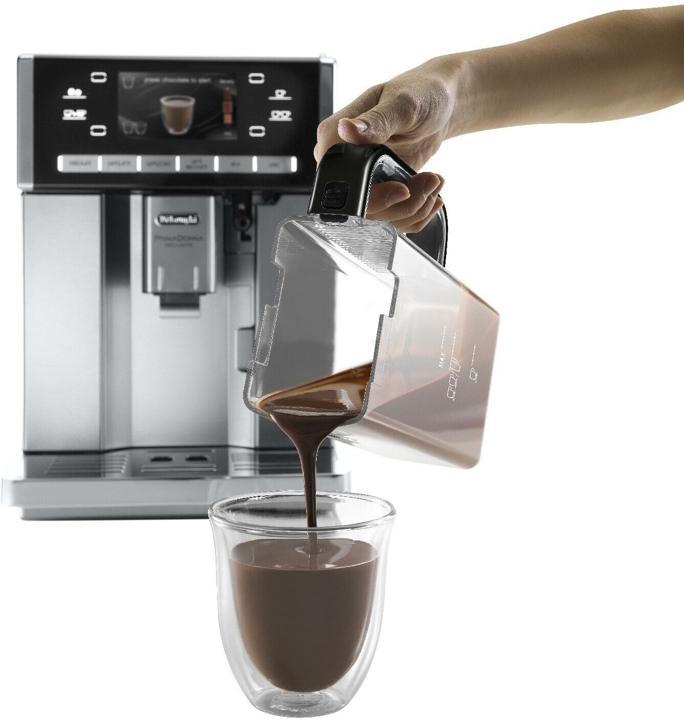 Thermal container for milk; adjustable height of the coffee supply unit for cups of different heights 88-140mm; energy saving mode; hot chocolate function; water filter; sound alerts; container for