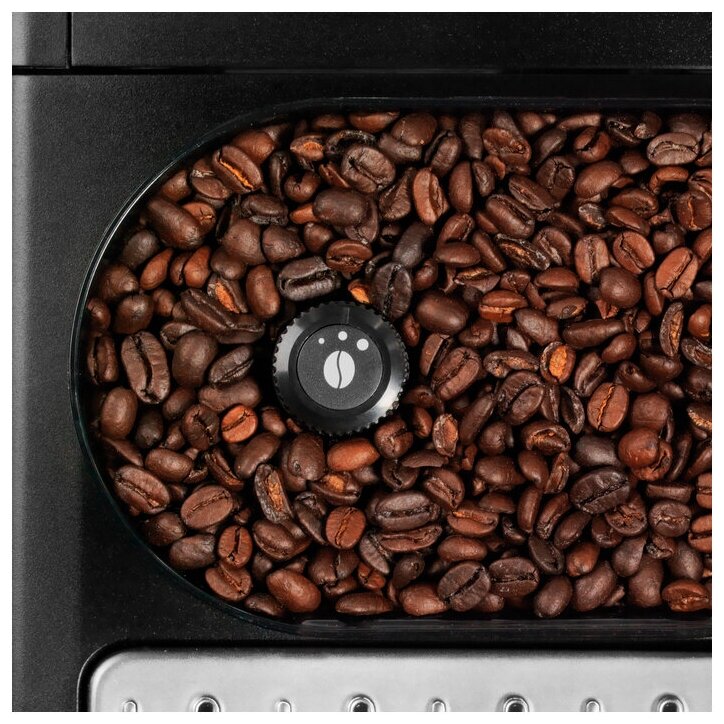 Automatic washing program; height-adjustable coffee dispenser; container for coffee grounds for 9 servings; 3 recipes; 3 temperature settings; 3 grinding levels; 3 levels of coffee strength; scale detector