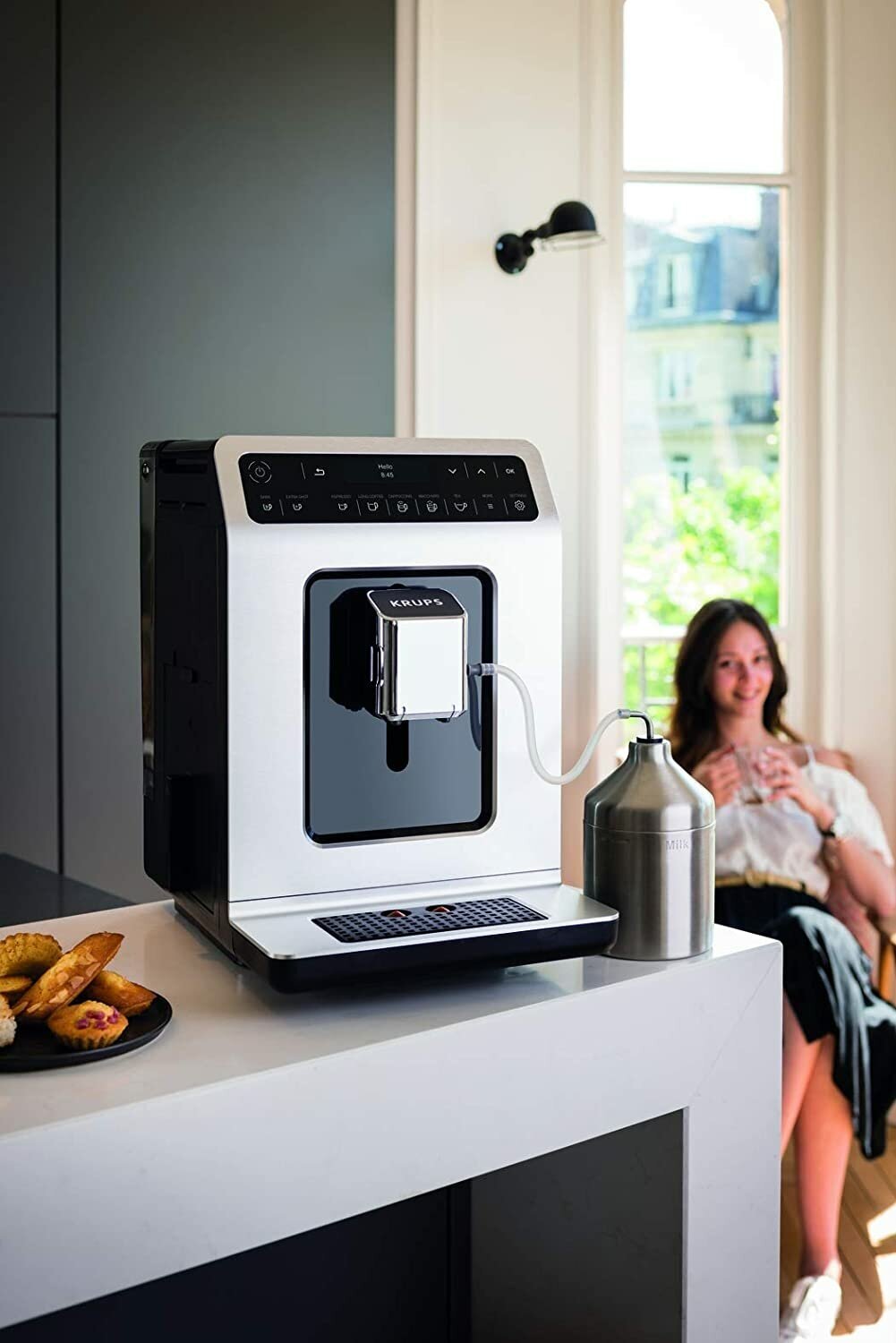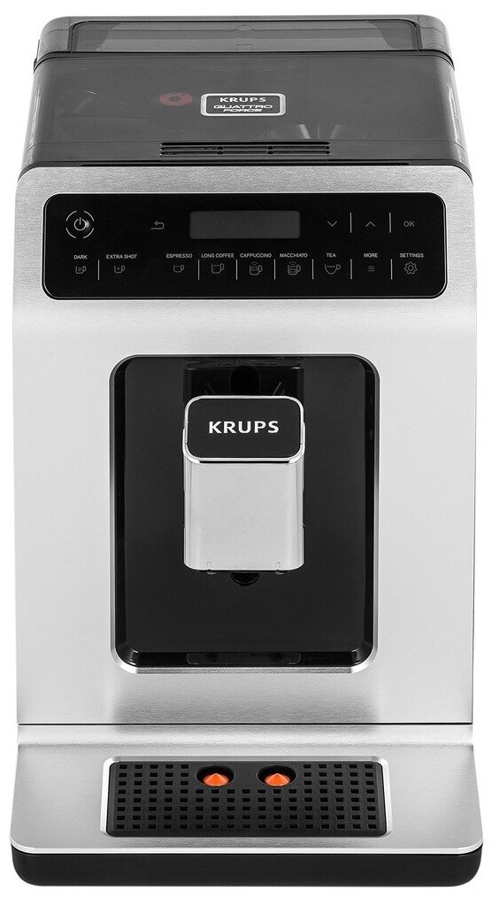 Container for used coffee for 10 servings; 3 grinding levels; 3 strength levels, 3 temperature settings; nozzle height adjustment; energy saving mode; 15 different programs; automatic steam nozzle cleaning
