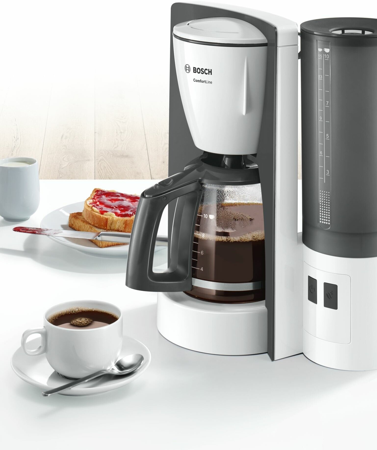Rotating filter holder, power indicator, cord compartment, automatic heating plate