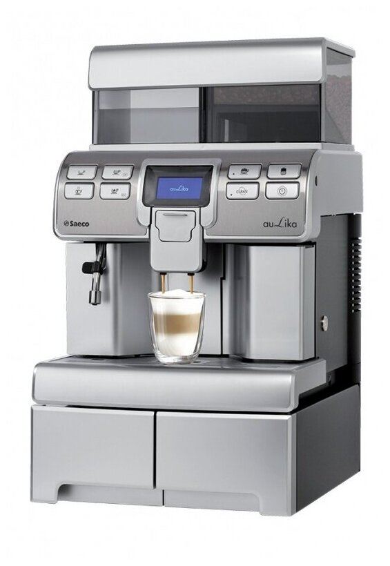 Height-adjustable coffee dispenser for a large glass up to 350 ml; container for storing accessories; button illumination; coffee bins with lock; compatible with payment systems