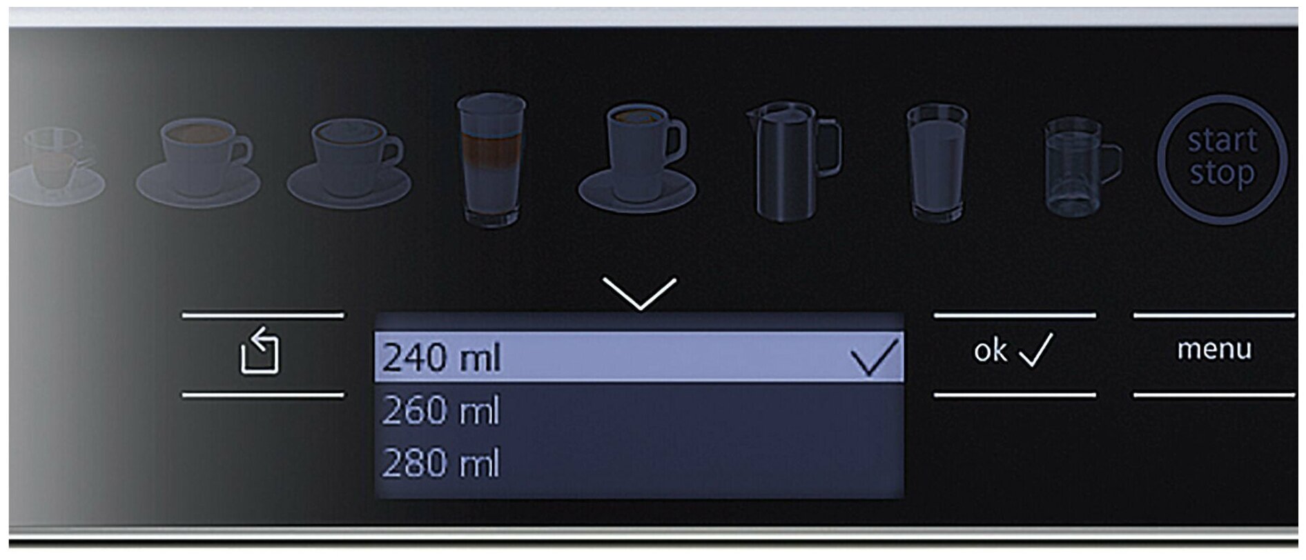 System rinse cycle; Brita water filter; cord length 1m; individual coffee settings; child protection
