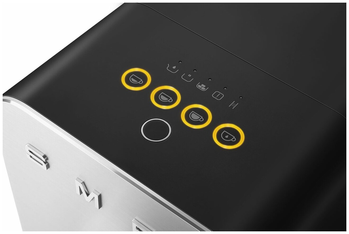 Power indicator, water level indicator, waste container, backlight, removable drip tray