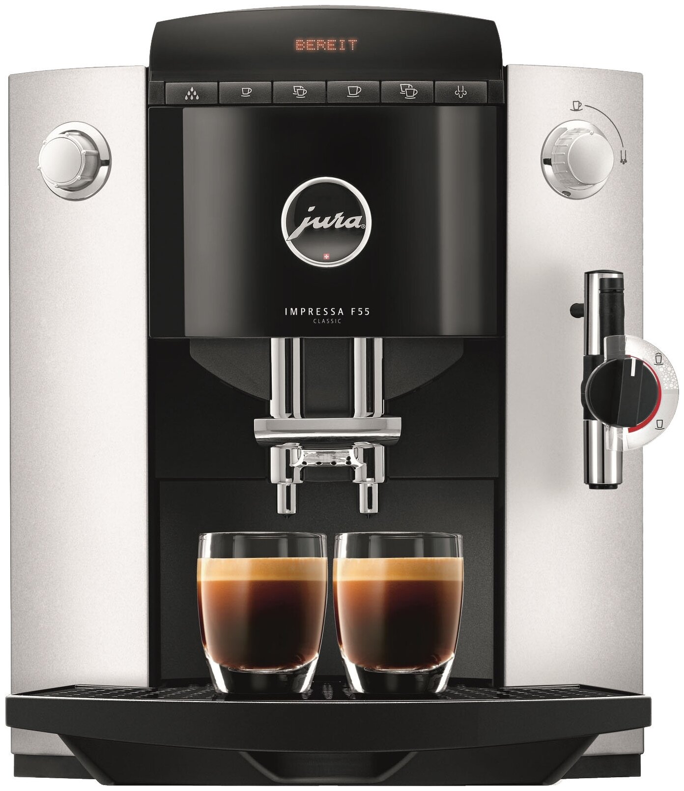 Filter CLARIS; energy saving mode; 6 grinding levels; system flushing/cleaning program; dialogue system in Russian; counter of prepared cups; height-adjustable coffee dispenser 70-111 mm; add. options: cooling