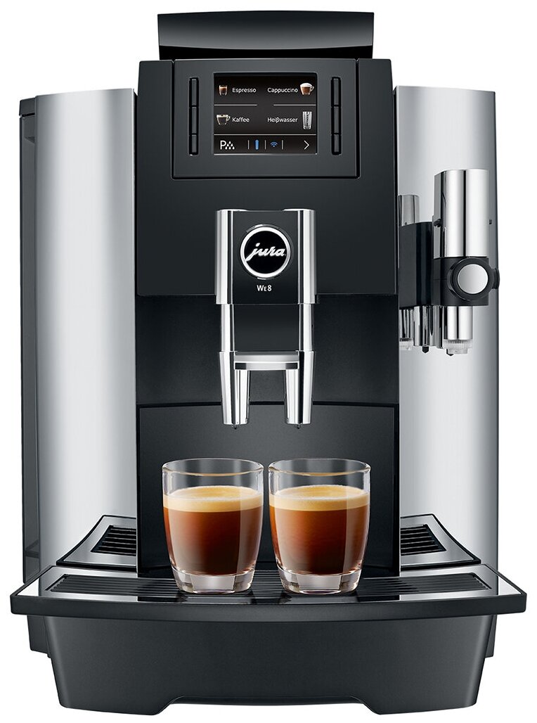 Automatic decalcification, auto shut-off when not in use, simultaneous preparation of two cups, hot water supply