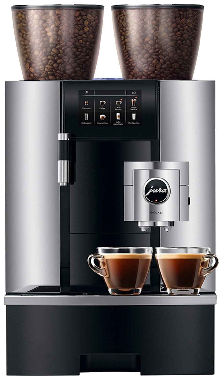Automatic decalcification, auto shut-off when not in use, rapid steam, water connection, two cups at once, hot water, pre-wet