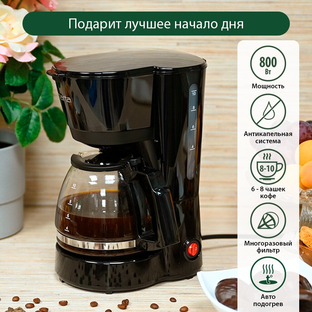 8-10 cups; water tank volume 0.75 l