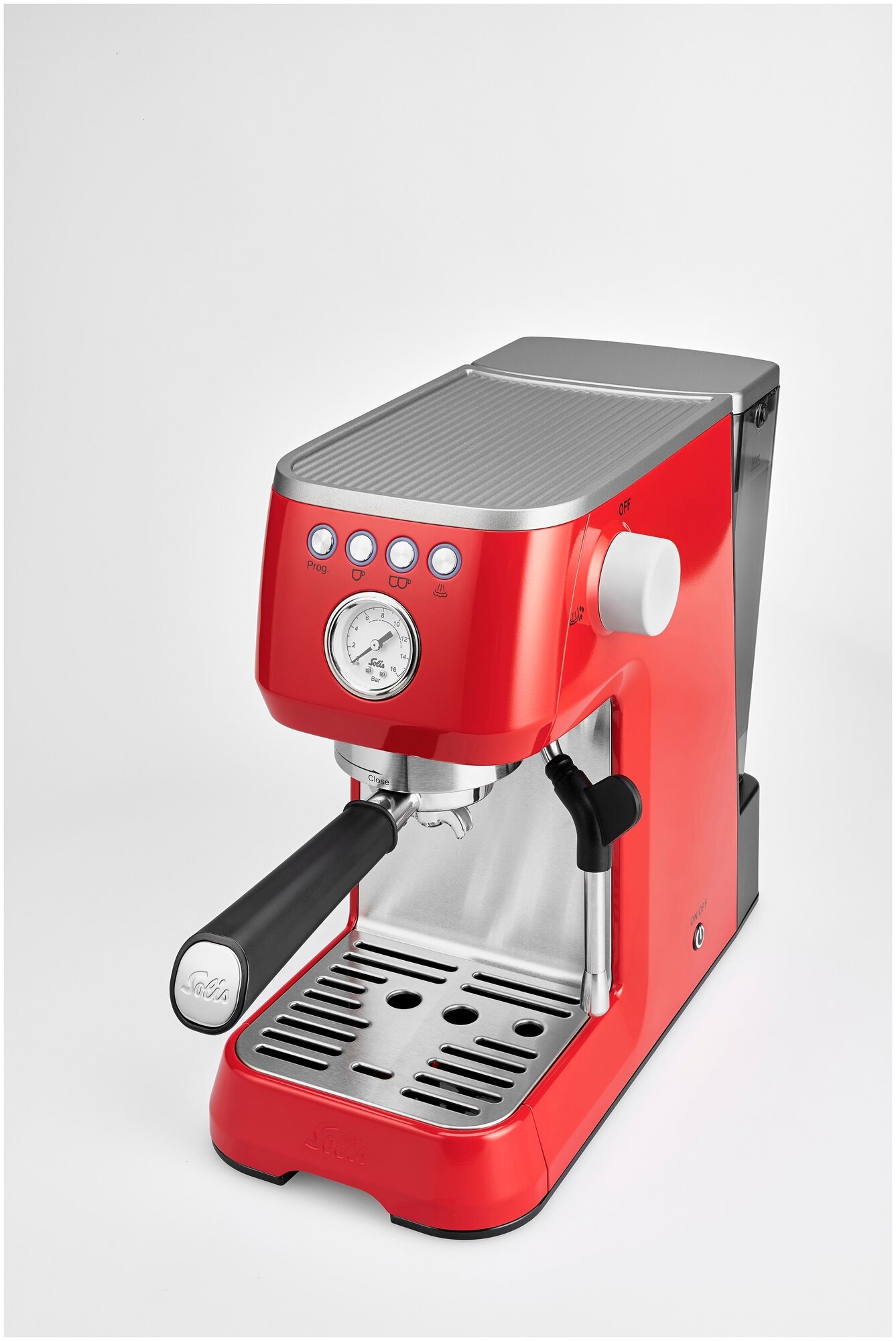 Includes filters for 1 and 2 cups, a filter for coffee pods in E.S.E. format, a stainless steel tamper and a milk jug, a measuring spoon, a BRITA INTENZA water filter, test strips for determining water hardness