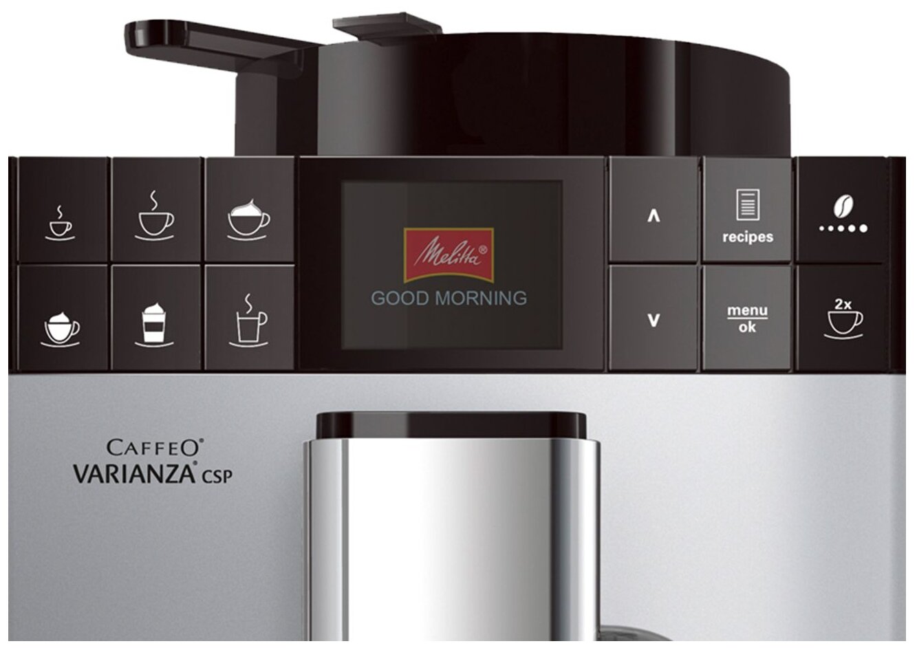 Measuring spoon; 10 built-in recipes; height-adjustable coffee dispenser; energy saving mode; automatic cleaning program