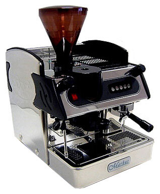 Built-in coffee grinder with grinding regulator, tamper for pressing coffee and ground coffee level limiter