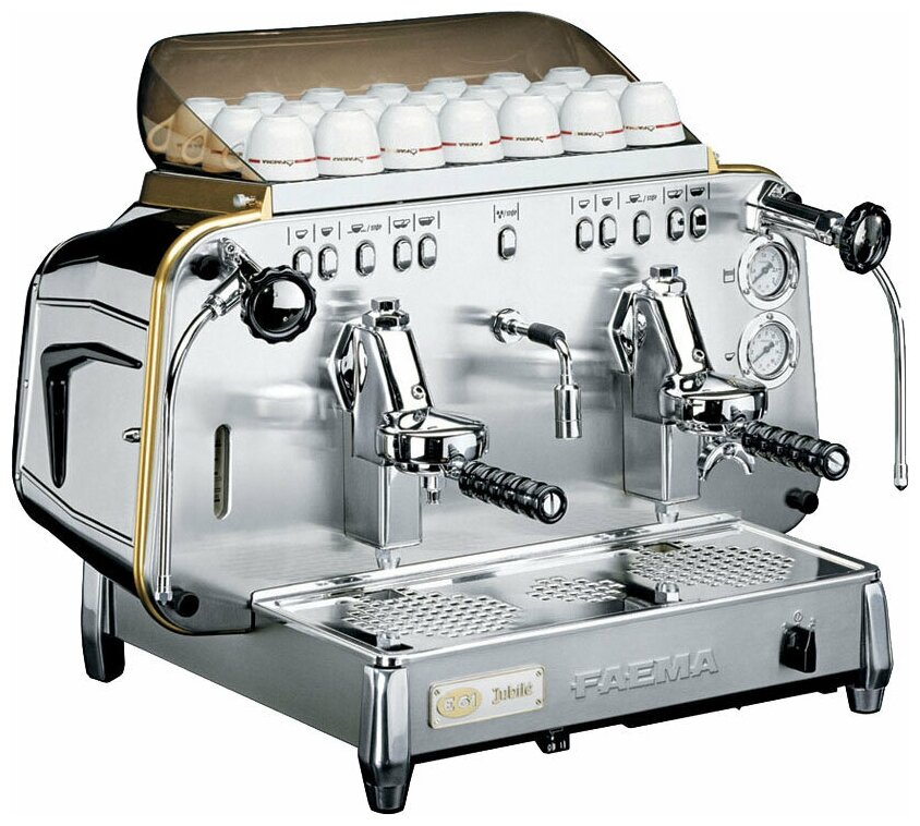 Pressure gauge, simultaneous preparation of two cups, hot water supply, cup heating
