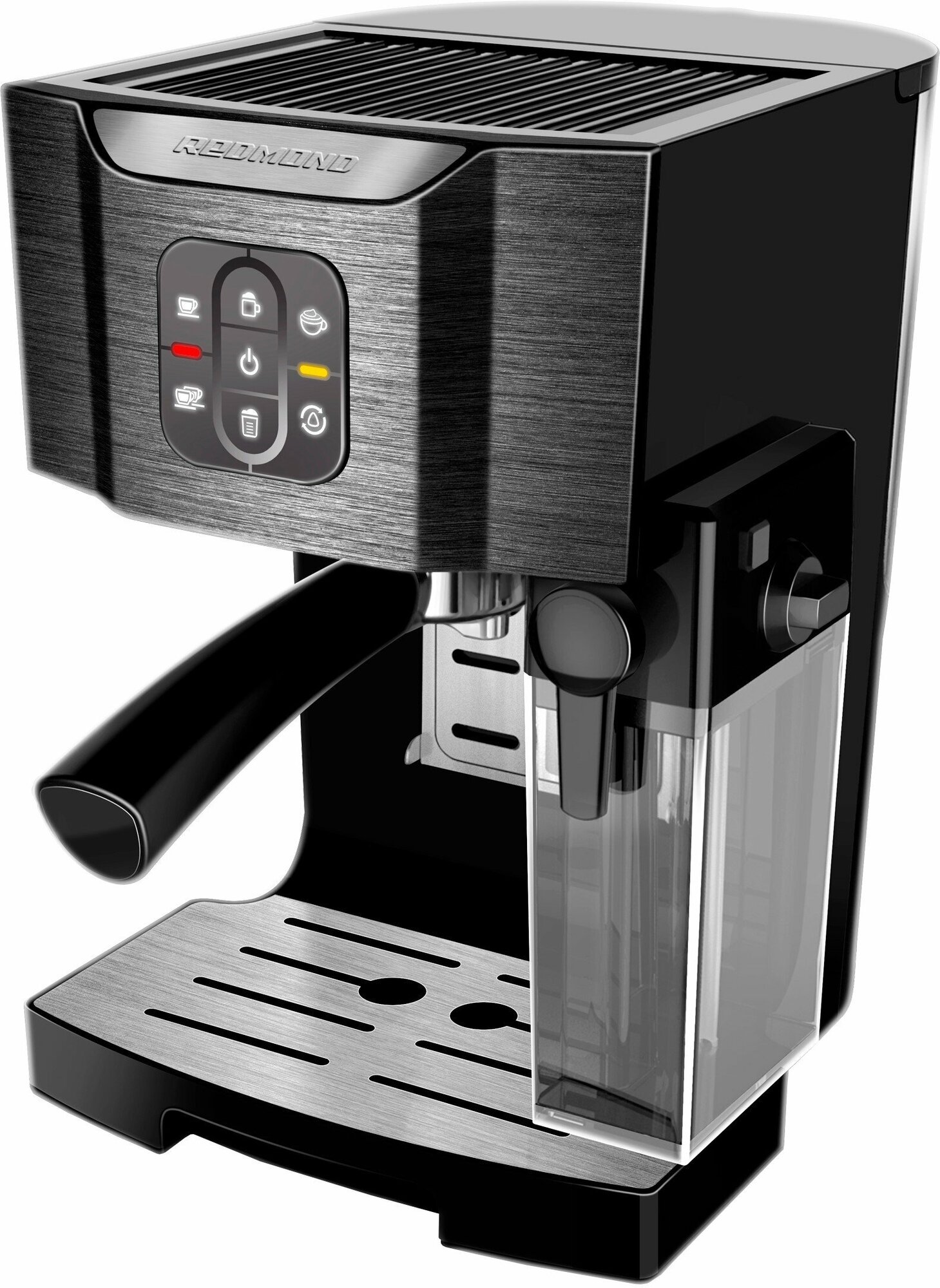 Power indicator, water level indicator, cord compartment, removable drip tray, ready-to-use indicator