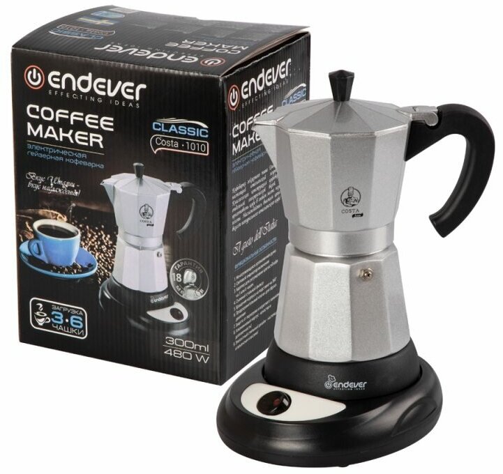 Device type: coffee maker, type: geyser, type of coffee used: ground, drink type: espresso, volume: 0.30 l, design features: power indicator