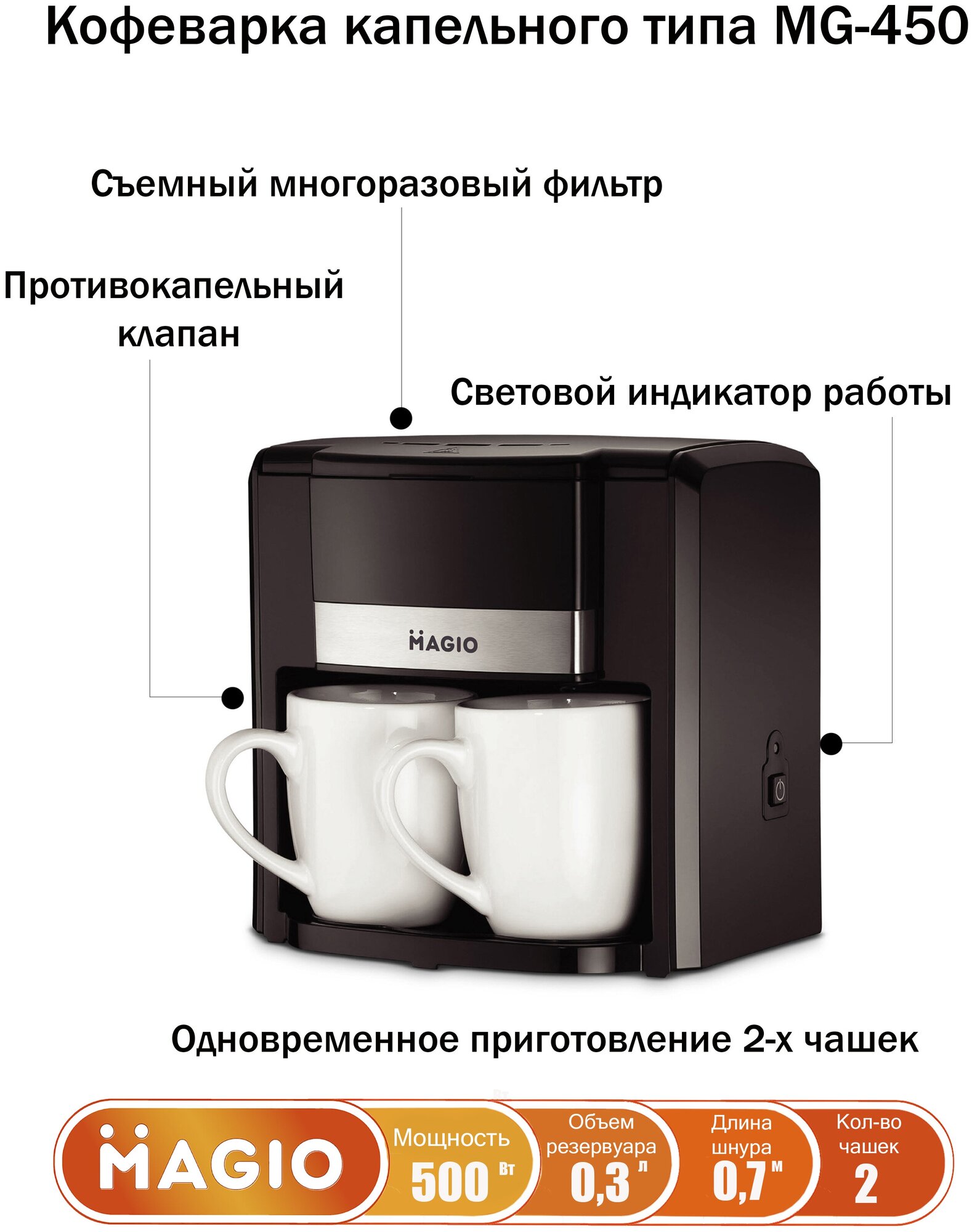 Device type: coffee maker, type: drip, type of coffee used: ground, volume: 0.80 l, design features: power indicator, water level indicator