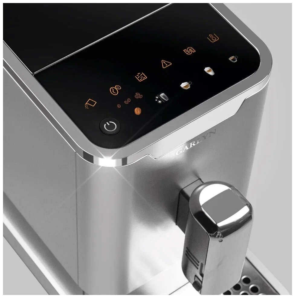 Milk tank capacity - 0.6 l; adjustment of portion volume, milk supply; 3 strength levels; indication of an open lid of the brewing unit, indication of intensive self-cleaning, indication of cleaning of internal systems from