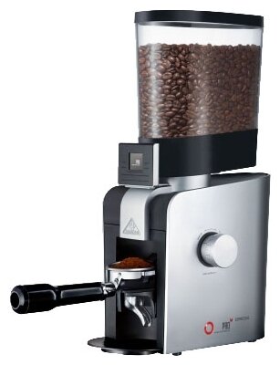 Millstone diameter 65mm; electronically programmable dosage Touch-Pad and display; batch grinding directly into the filter holder