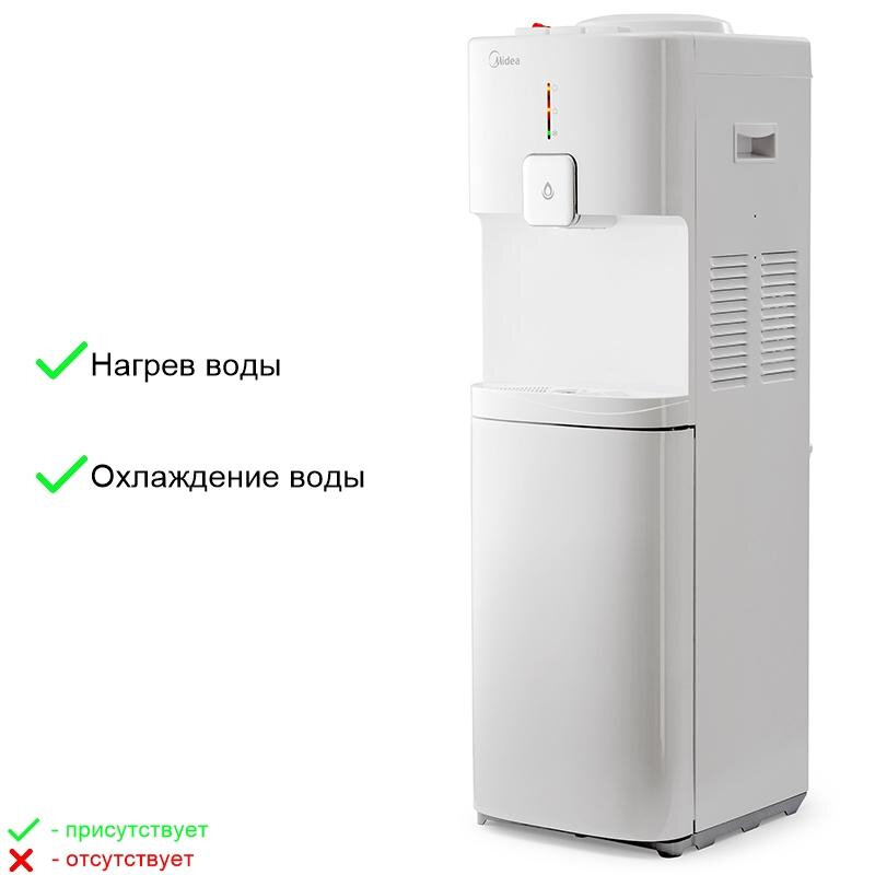 Type: cooler, floor, cooling type: compressor, top bottle installation, heating, heating power: 650 W, cooling power: 100 W, child protection, width: 35 cm, depth: 31 cm, height: 100 cm, weight: 12.20 kg
