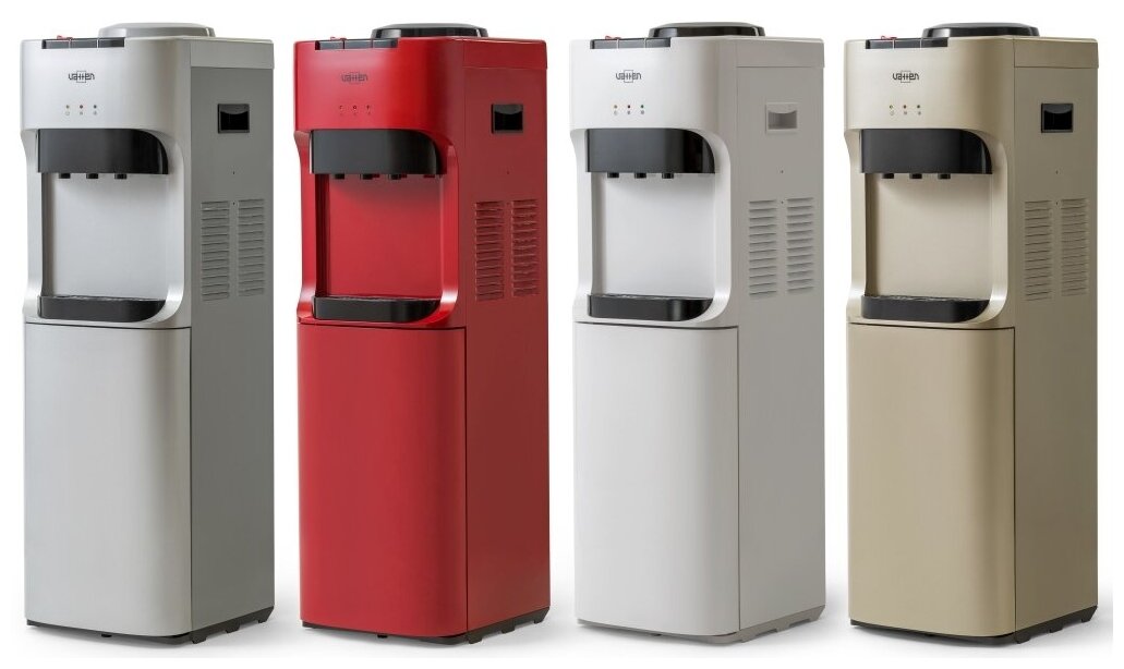 Heating capacity 6 l/h; cooling capacity 2 l/h; height is indicated without bottle; three taps, button control - hot, cold and room temperature water