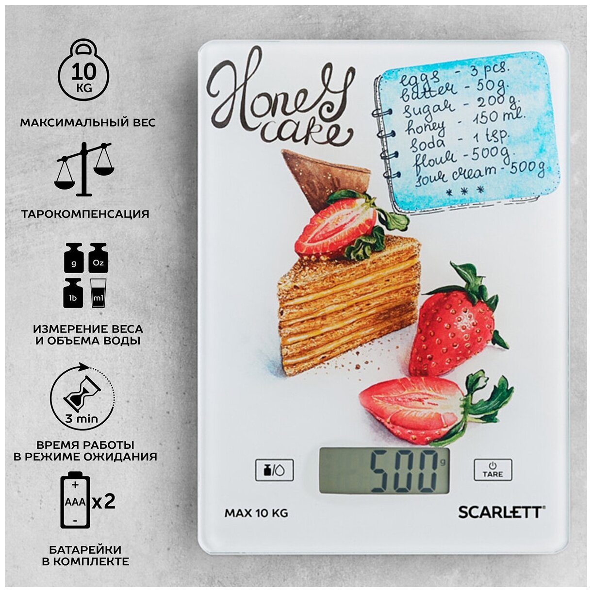 Type: Kitchen scales, design: platform, weighing limit: 10 kg, measurement accuracy: 1 g, additional functions: automatic on, automatic off, sequential weighing, tare compensation