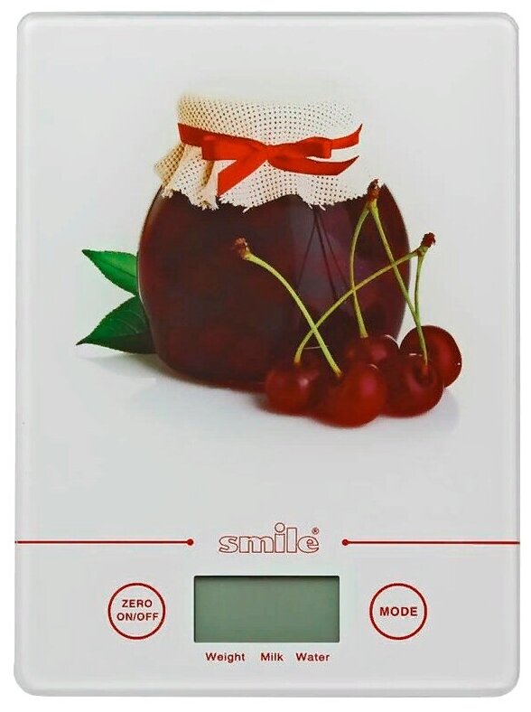 Type: electronic, design: platform, weighing limit: 8 kg, measurement accuracy: 1 g, additional functions: automatic shutdown, liquid volume measurement, tare compensation, indication: battery charge, switch