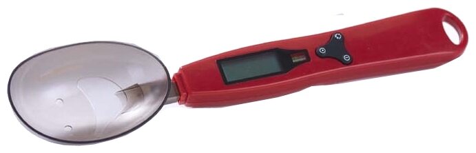 Digital spoon scale; colors: red, blue, yellow; The set includes two spoon attachments: large and small