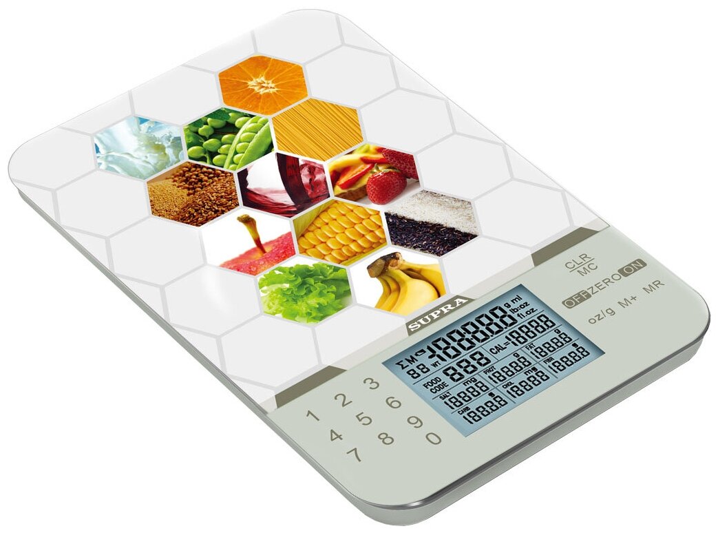 Type: electronic, design: platform, weighing limit: 8 kg, measurement accuracy: 1 g, additional functions: automatic shutdown, liquid volume measurement, tare compensation, indication: battery charge, switch
